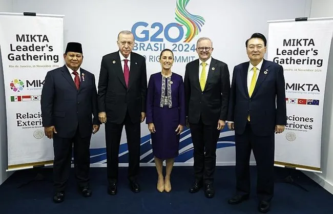Başkan Erdoğan, zirve kapsamında, Meksika, Endonezya, Güney Kore, Türkiye ve Avustralya arasındaki gayriresmi istişare ve eş güdüm platformu MIKTA’nın liderleriyle bir araya geldi.