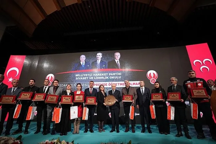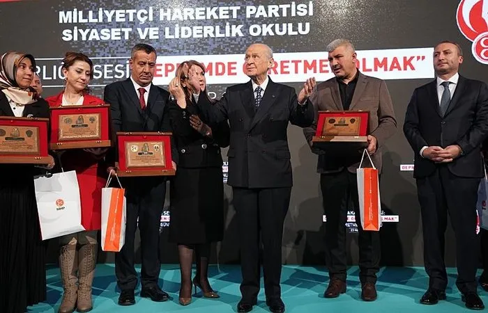 Burada, ismini paylaşamadığımız aziz deprem şehitlerimiz bizleri affetsin.”Topcu, yüzyılın deprem felaketinde hayatını kaybederek şehit olan öğretmenlere rahmet diledi.Bütün öğretmenlerin gününü kutlayan Topcu, “Genel Başkanımız Sayın Devlet Bahçeli’nin vatan toprağının her yerinde haykırdığı ‘Derdiniz derdimizdir ve memleketimizin dertleriyle hemhal olduğumuz gibi sizlerin sorunlarına çözüm getirmek de bizim boynumuzun borcudur.’ ifadesinin arkasında olduğunu bilmenizi isteriz.” dedi.Programa, deprem bölgesinde çalışan ve kendi kayıplarına rağmen diğer depremzedelere yardıma koşan bazı öğretmenler de katıldı.MHP Genel Başkanı Devlet Bahçeli, bu öğretmenlerden Hünkar Sığnak, Hasan Güven, Nurullah Güleryüz, Telha Tanyıldızı, Mehmet Aydın, Zeynep Nur Kalkan, Zakire Kardaş, Yalçın Tutlu, Nedim Türk, Ayşe Örsdemir, Halil Manuş ve Metin Tayarer’e plaket sundu.
